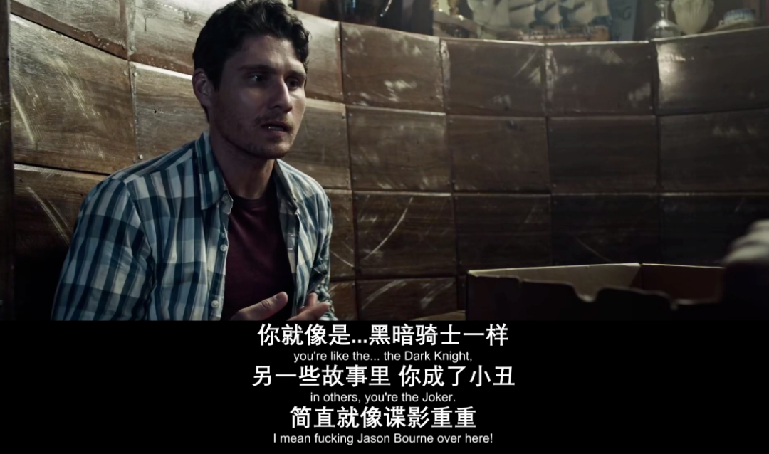雷克斯出獄後,遇着了好友,好友形容雷克斯是《諜影重重》裏的主角傑森·伯恩。