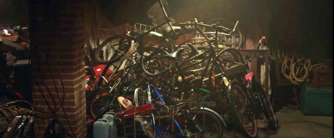 看到地下室堆積的自行車,幻想這一大家子騎車出遊。