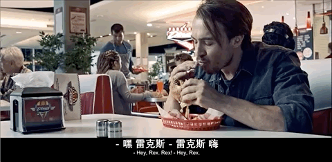 雷克斯在快餐店被狗仔包圍時,“另我”直接對着狗仔罵F*ck off。
