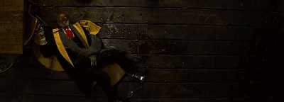 《八惡人》中,媽惹法克俠被一槍爆鳥