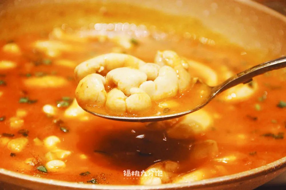 最後來一鍋麻婆豆腐河豚白子煲仔飯。我們説的河豚白子,其實就是河豚的精巢,飽含着蛋白質和脂肪,還自帶一股河豚特有的魚香。以麻辣口味去料理河豚,一是去白子的膩,二是給豆腐增加風味,熱氣騰騰,殺氣騰騰。