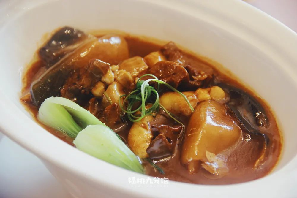 ▲ 鮰魚肚佛跳牆:鮰魚肚、海蔘、鮑魚,濃縮精華的紅燒湯汁