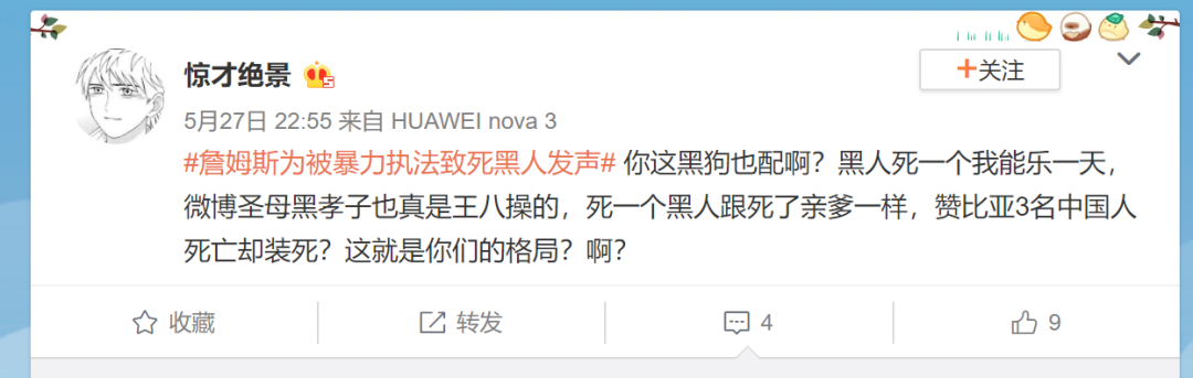 同時,因為死去的弗洛伊德是黑人,贊比亞殺害三名中國人的人也是黑人,所以他們是一樣的,黑人不值得同情。