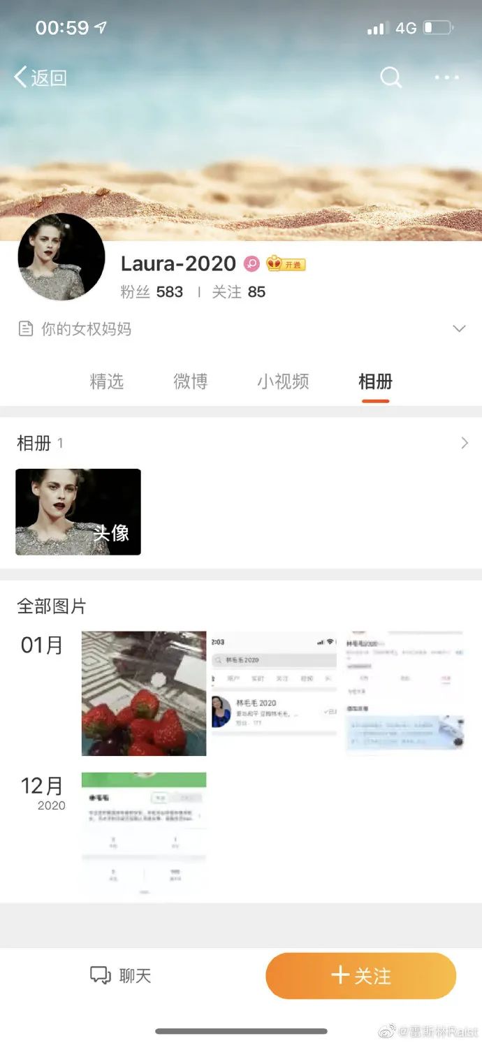 點開她主頁,發現又是一個 自稱女權 且鐵粉林毛毛的網友: