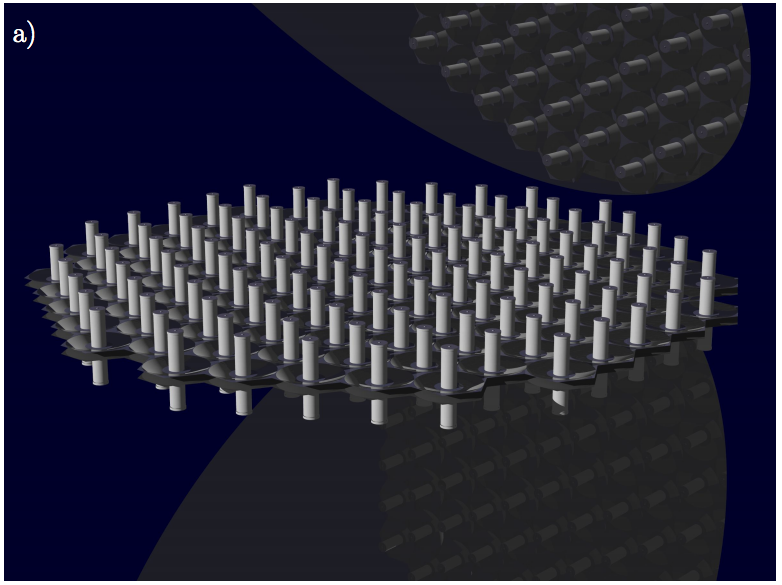Janhunen的巨衞星包括一個由相互連接的圓筒棲息地(中部)組成的盤面,兩側都有巨大的鏡面,將陽光照入棲息地。