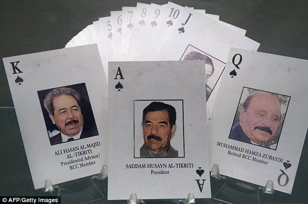 美國就曾經直接把伊拉克的通緝人物,按重要程度印在牌面上,不僅向參戰軍人發放,“寓緝於樂”,使每個美國大兵在打撲克牌的同時都牢牢記住了抓捕對象,還向伊拉克人散發了近百萬副。