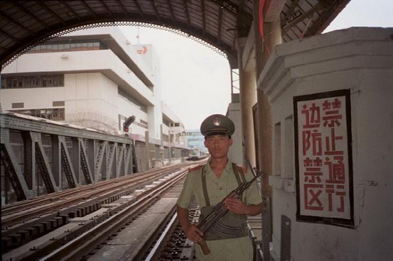 站在羅湖橋的李恆德不斷地從橋的一頭走到另一頭。