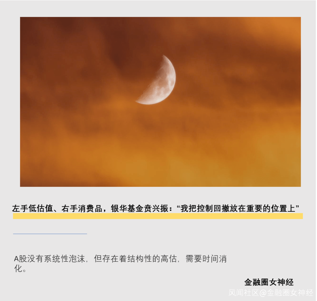 去年二季報中,他提及,長期看仍深耕消費、科技、醫療的好賽道,但市場存在階段性估值收斂的可能性,低估值資產存在均值迴歸的機會,三季報中表示“組合已經降低估值水平,增持了銀行、保險等順週期方向。”