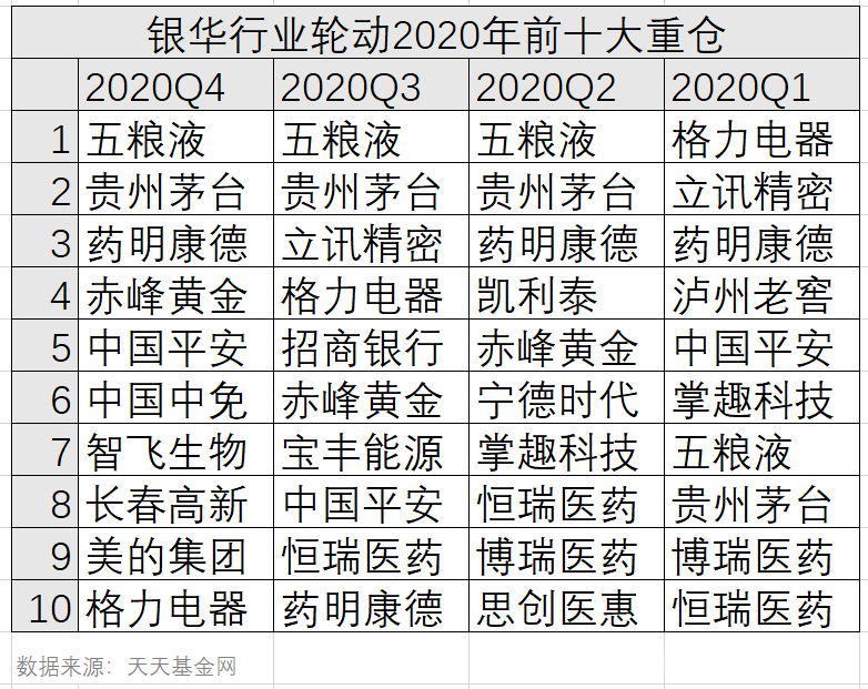 從銀華行業輪動的持倉來看,大致分佈在食品飲料、醫藥生物、大金融、有色、家電等行業。