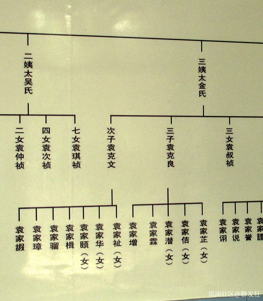 袁世凱有一妻九妾!在任駐朝商務代表時,娶朝鮮貴族金氏為妾。金氏嫁袁時,帶了兩個陪嫁的姑娘,即李氏和吳氏。袁世凱娶妾是多多益善,就把這三個姑娘(即金氏、李氏、吳氏)一併收納作為姨太太,並且按三人年齡大小,排定李氏為二姨太太,金氏為三姨太太,吳氏為四姨太太。三姨太太金氏,生子克文、克良,女叔禎、思禎。克文之子袁家騮(1912~2003) ,著名華裔美國物理學家,媳吳健雄,素有“東方居里夫人”之稱。據此算來,袁家騮有四分之一的朝鮮血統!