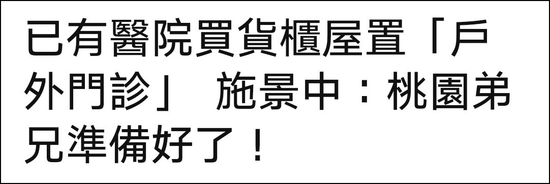 綜合台灣媒體報道,25日,台大醫師施景中在社交網站上分享照片並透露,桃園市內的一家大型醫院緊急購入貨櫃屋,準備户外門診用,以確保做到分艙分流。