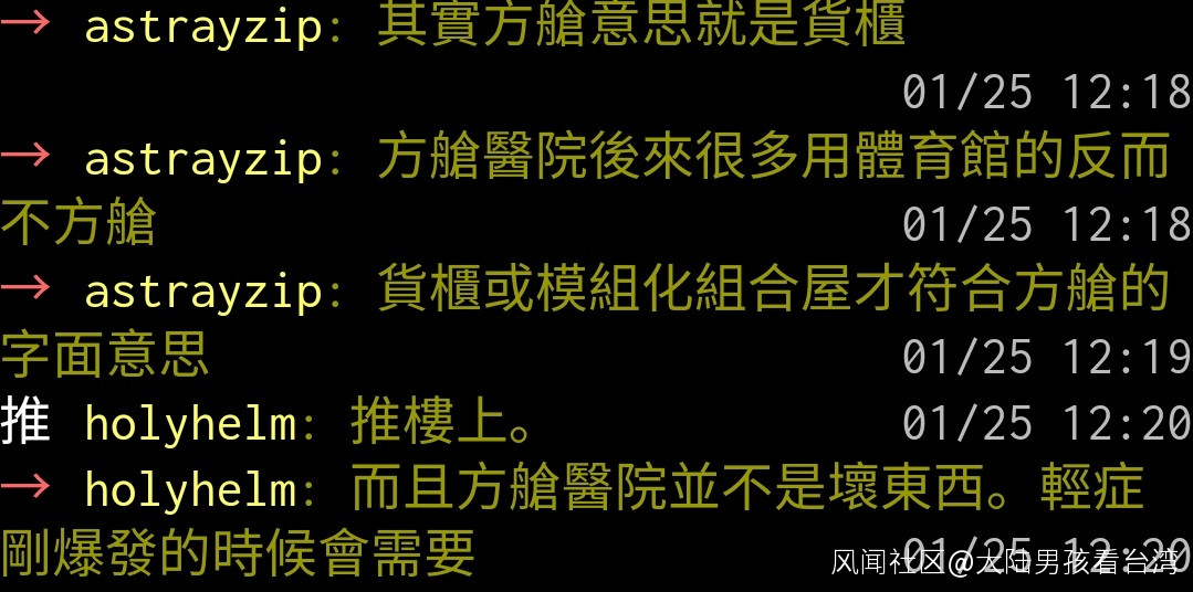 PTT論壇上,有台灣網民表示,這才是貨真價實的“方艙”。
