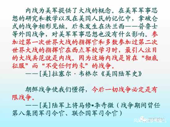 美軍將領在西點接受的傳統軍事教育是以美國內戰為範本的,至少是朝鮮戰爭那個時代,並不如我們很多軍迷們認知的那般高大上。以美國內戰為範本誕生的理論是以無限暴力摧毀對方的意志及一切物質力量,從而消滅對方或迫使對方屈服,實際上並不具先進性。而朝鮮戰爭是一種新的形勢下的國際局部戰爭,戰爭手段受到的制約很多,習慣於依託優勢國力打一場不受約束的大戰的美軍將領非常難以適應:大打一場才能解決問題,可又打不了,即或打得了也極易使收益和損失不成比例;而讓他們在小打小鬧的陣地攻防的爭取和保持主動,他們就茫然無所措了(也受制於勞師遠征士氣的問題:士兵們對激烈對抗的戰鬥行動不感興趣),而我軍反而生龍活虎,花樣百出,把小勝變成了大勝,牢牢地掌握了地面戰場的主動權。