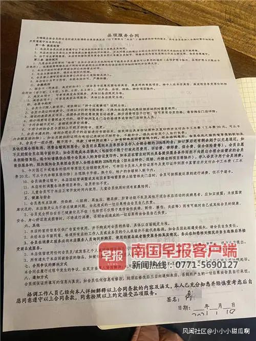 ▲傅女士辦卡後,店裏要求她簽署了一份品項服務合同。