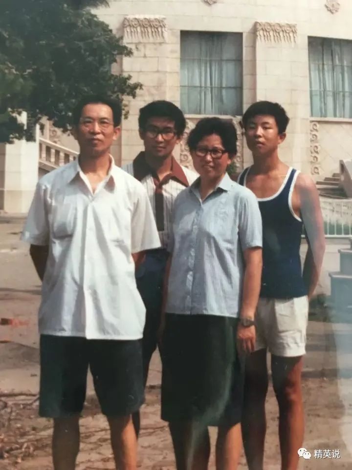 大學時的奚喬和爸爸、媽媽和弟弟(1980年於北京)