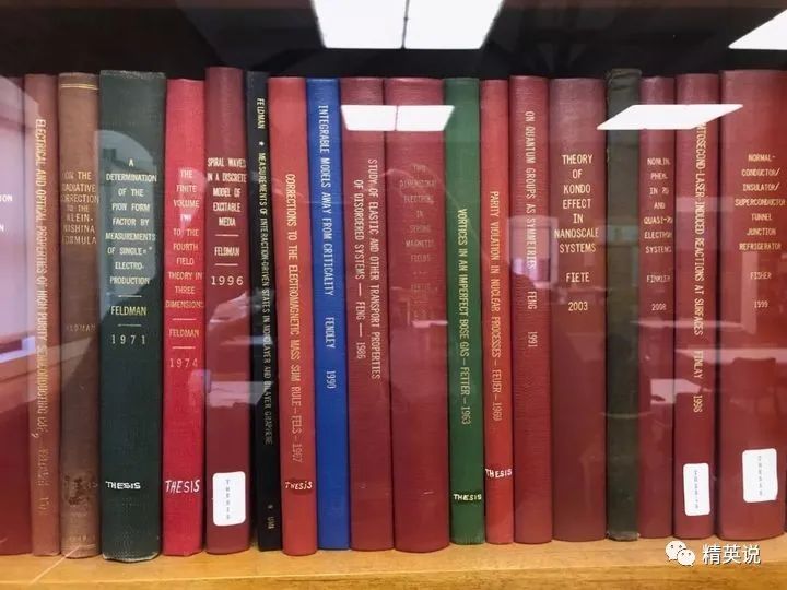 奚喬的博士論文陳列在哈佛大學物理系圖書館的櫥窗裏