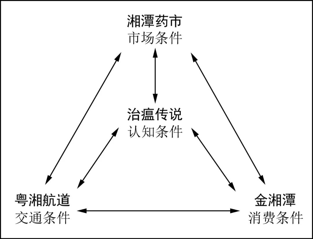 至清代,隨着《瘟疫論》流傳和清代温病學派的形成,清乾隆之後的醫籍多認為瘟疫由“氣”傳播,67檳榔在各類的治瘟藥典中開始頻現,而中國民間最著名的個案當屬湘潭的“檳榔治瘟傳説”,其檳榔食俗也一直延續至今。明清時期,極具邊緣隱喻的“瘴氣”伴隨國家進程一體化而消散,瘟疫論逐漸興起。清代的廣州成為南方經濟中心後,湘潭一躍成為聯結廣州與中國內陸的貿易中樞,其地方社會的經濟、文化發生變遷。作為南方異俗的檳榔藉助廣州的貿易網絡,曾一度在全國多地傳播,但唯獨在湘潭實現了長盛不衰以及“在地化”,而“瘟疫論的建構”最終成為檳榔在湘潭實現從“異俗”到“食俗”演化的關鍵。