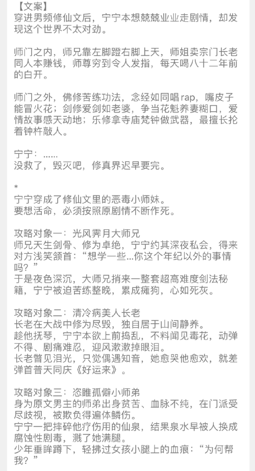 希望晉江男主少來對女主命都給你係列了,工業糖精和克隆苦瓜再多點,讀者的命都要看沒了,可憐可憐我們的眼睛吧。