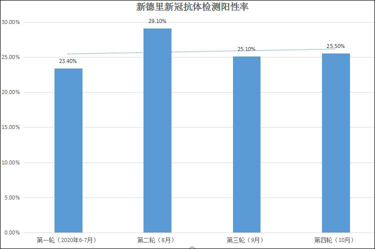 據報道,為了評估新冠病毒在印度首都的傳播情況,新德里政府已經進行了五輪血清抗體檢測。今年1月所進行的第五輪檢測,是目前為止規模最大的一次調查。該調查從新德里每個行政區域抽取了100個血清樣本,合計抽樣2.8萬人。