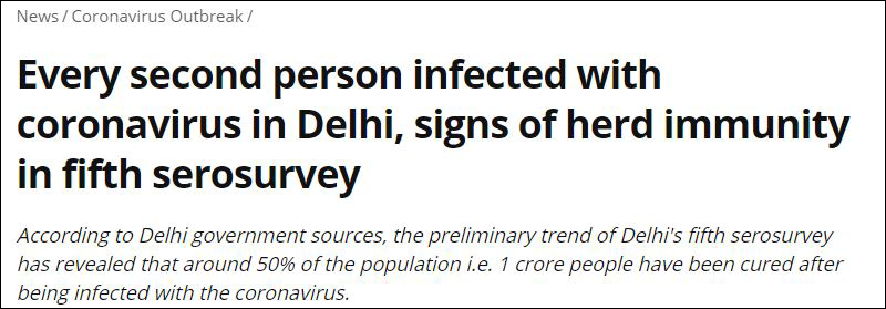 在印度方面看來,這意味着逾半新德里民眾(超過1000萬人)曾感染過新冠病毒。