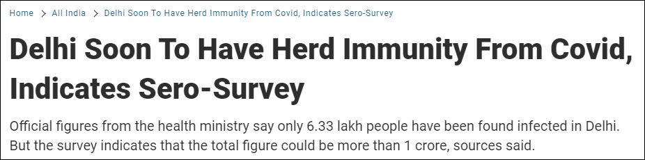 在印度方面看來,這意味着逾半新德里民眾(超過1000萬人)曾感染過新冠病毒。