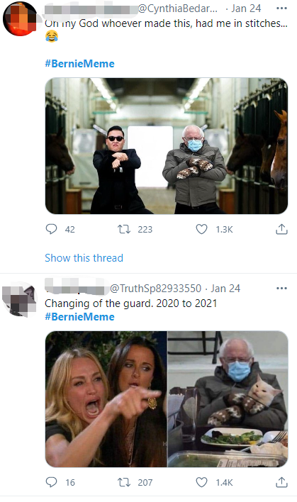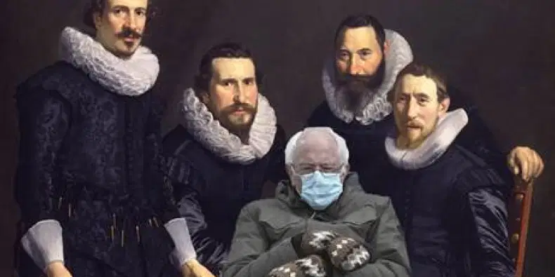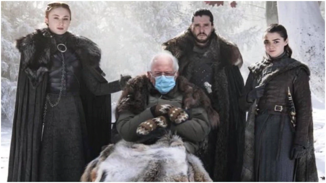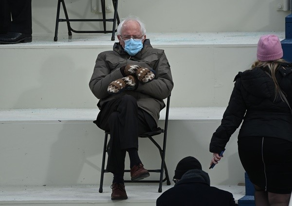起因是在拜登的就職典禮上, 79 歲的桑德斯一身街頭大爺裝扮出席。