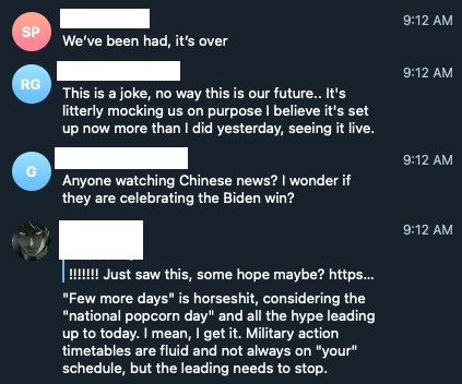 因為在 Q 的世界觀中,拜登是中國在美國設置的傀儡總統,就有網友猜測,拜登當選之後,中國的新聞應該都是在慶祝吧。。。