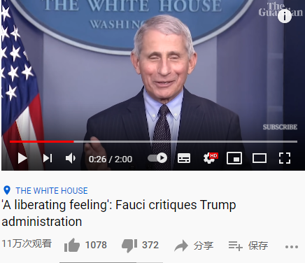 但身為醫學專家的福奇博士怎能不懂這些,他敢於説真話。也因為和川普政府意見相左,不怎麼受總統待見,他甚至還收到了川粉的死亡威脅。