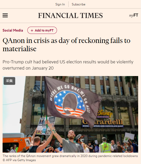 金融時報, QAnon in crisis as day of reckoning fails to materialise