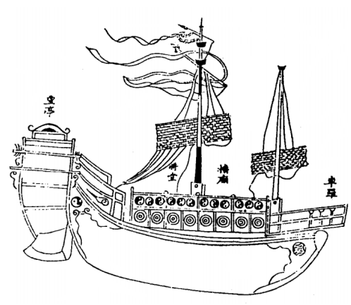 中國古代有明確標準的船隻也從來就不是寶船的長寬比,那種近乎二比一的船隻從來就是文人胡謅,因為這種比例的船隻非常容易葬身大海。元代遠征日本的海舟標準是“湖船底(平底)、戰船蓋、海船頭尾,通長八丈三尺,闊二丈,並淮尺計八百料”(就這個比例災難來臨還是跑不掉)。出土的沉船也證明了這個比例,元代沉船殘長28.6米,殘寬5.6米,長寬比正好也是4比1。明朝初年對元朝船隻進行了改進,船隻的長寬比進一步放大,僅僅是內河的四百料戰船就達到了“身長8丈6尺9寸、闊1丈7尺”的規格,長寬比已經放大到5比1。而沿海製造的海戰船隻五百料戰船更是“船身計官尺長12丈2尺5寸(約38米),深1丈1尺5寸(約3.5米)”,長寬比超過了10比1;沿海的四百料戰船也延續了這個比例,也達到了身長9丈4尺(約29米)深9尺2寸(約2.8米)的尺度。