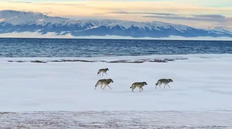 就連賽里木湖畔深居山林的狼羣也忍不住出來遛彎,