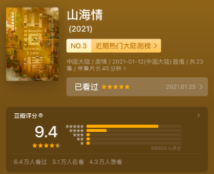 但是誰也沒想到,在無數人這樣發自內心的誇獎和安利下,這部劇的評分一路抬升,昨晚大結局時竟然已經高達豆瓣9.4。