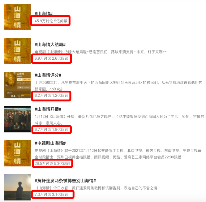 不止我一個人如此,微博上有關山海情的話題也爆了。