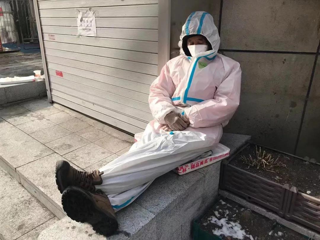 一名連續工作一夜的防疫人員癱坐地上 圖源:公眾號“中國慈善家雜誌”