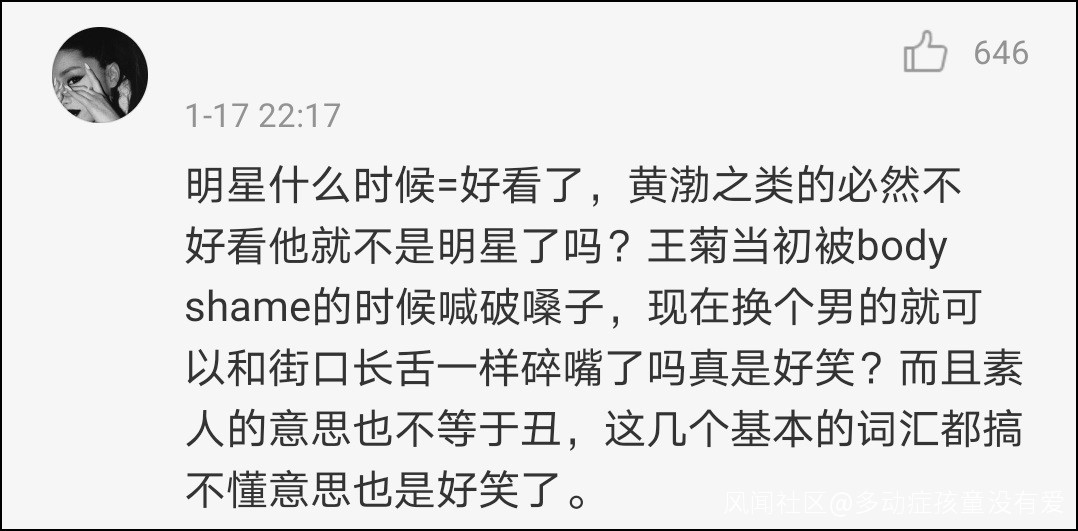 可以看到,有網友在評論他人長相時聲稱自己“沒有體型歧視”。