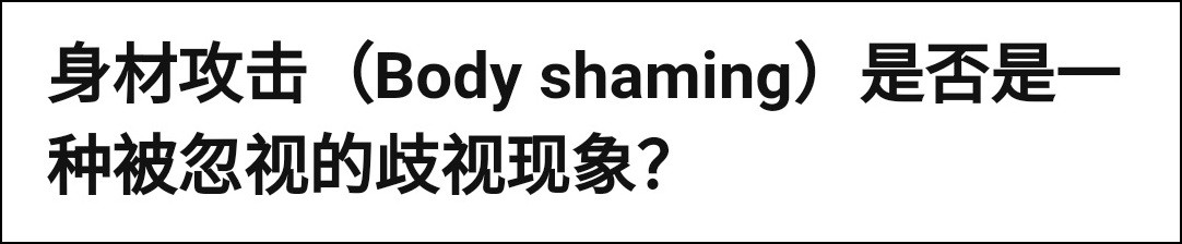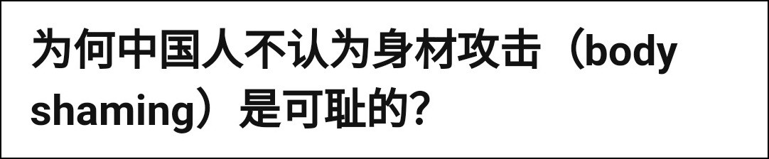 身材攻擊(Body shaming)是否是一種被忽視的歧視現象?為何中國人不認為身材攻擊是可恥的?