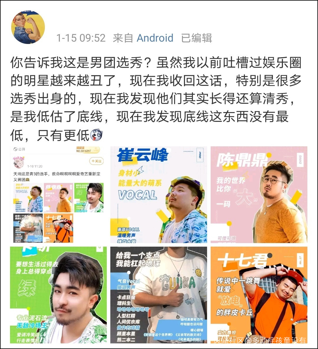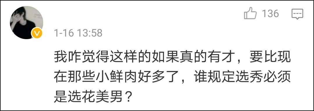 不過,也有部分網友認為,選秀不是非得選花美男,為什麼要去阻止普通人追夢呢?