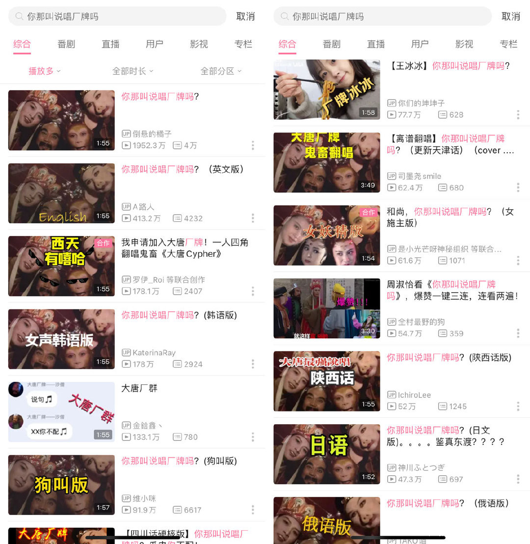 如果你最近經常上B站的鬼畜區和音樂區,相信都能看到大量標題為《你那叫説唱廠牌嗎?》的鬼畜或者RAP翻唱視頻。