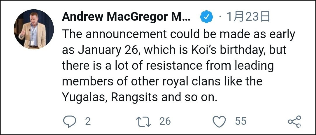 需要強調的是,截止目前,泰國王室還沒有對外發表任何立後聲明。
