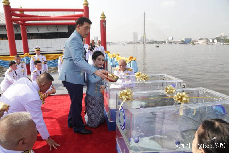 在泰國,生日當天放生被視為是在做功德;而瓦素吉碼頭是泰國王室的專屬碼頭,此前很多王室成員都會選擇在這裏放生以慶祝生辰。但是,泰王親自陪同的情況還是十分少見的。