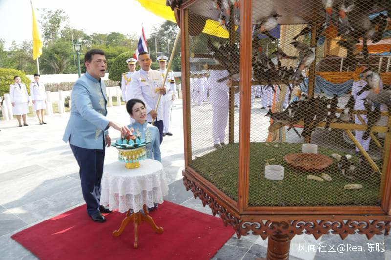 據泰國《民意報》報道,當地時間26日,時值詩妮娜36歲生日,泰王與她於上午時分前往律實區瓦素吉碼頭舉行放生儀式。兩人一起放生了一對耕牛、一對水牛,以及水禽、鸚鵡和淡水魚等動物。