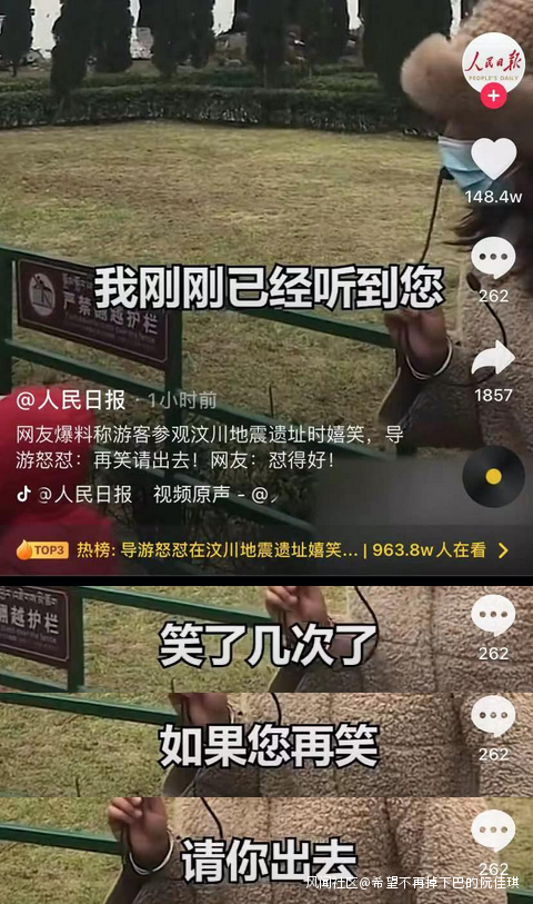 遊客參觀汶川地震遺址不停説笑,導遊怒懟:再笑請出去!_風聞