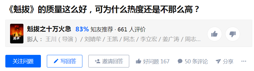 越來越多的動漫愛好者注意到這部電影,並在互聯網每個角落自發宣傳;三部電影的豆瓣評分均在8分以上,《魁拔》與《魁拔3》還入選豆瓣的官方榜單;知乎上,許多年輕的動畫愛好者情不自禁發問:“魁拔是不是最好的國漫?”