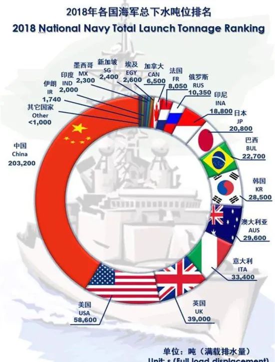 ▲2018年世界各國軍艦下水噸位排名