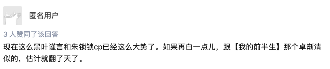 “現在葉謹言和朱鎖鎖已經這麼大勢了,如果(葉謹言膚色)再白點,估計就翻了天了。”