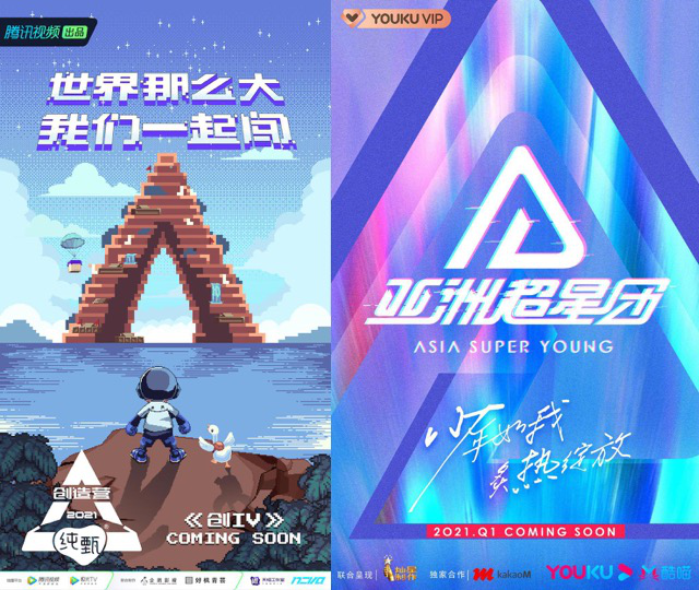 偶像選秀進入第四年,火藥味兒比以往更濃郁了一些。雖然真正的戰役尚未拉開,但連日來《青春有你3》《創造營2021》不斷向市場拋出重磅炸彈,從明星導師到學員名單,從拍攝路透到制服照,熱鬧非凡。優酷也將在Q1上線《亞洲超星團》,再戰偶像選秀市場。