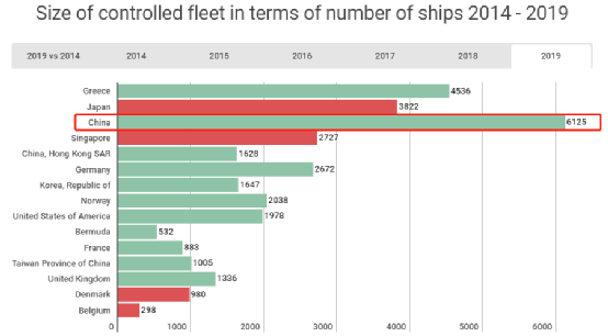 航運方面,僅中國內地的船隊規模達到了6125艘,排名世界第一;船舶總運力為1.95億GT,排名世界第二。