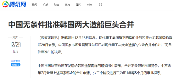 這個結果,韓國人自己也沒想到。韓國船企先是坦言“韓中兩國造船業競爭激烈,原本預測會在華遇到較大阻力”,然後又做出猜測,這麼順利應該是“公司對市場壟斷等問題的積極説明。”
