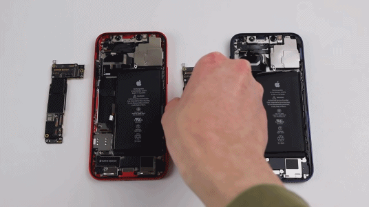 事情是這樣的,油管上有個叫 Hugh Jeffreys 的小哥做了這樣一個實驗,他們買回來兩台嶄新的 iPhone12 ,做了拆機。