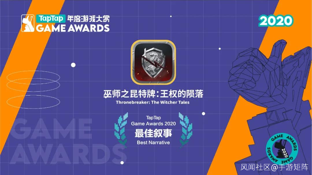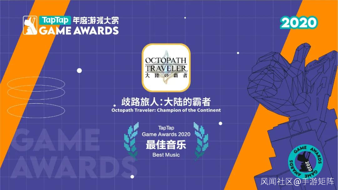 而CDPR出品的經典IP衍生卡牌手遊《巫師之昆特牌:王權的隕落》、Square Enix推出的同名經典IP手遊續作《歧路旅人:大陸的霸主》、獨立冒險解密口碑佳作《孤帆遠航》則分別獲得【最佳敍事】、【最佳音樂】和【最佳獨立遊戲】三個獎項。